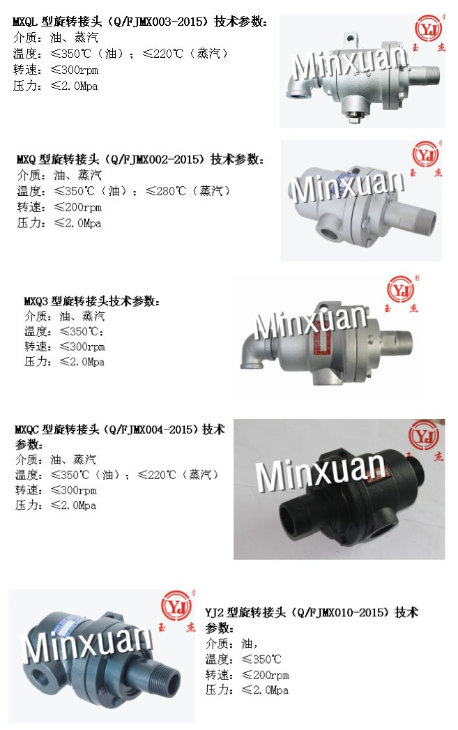 Spherical seal rotary joints are MXQL type, MXQ type, MXQ3 type, MXQC type and YJ2 type. Its characteristics are: the rotating shaft adopts 40CR bar stock integrated finishing machining, and has been specially treated to improve the strength, hardness, wear resistance and comprehensive mechanical properties; the spherical seal design is anti-sway, can be automatically adjusted, and is concentric to the equipment Low degree of requirements; dual oil-free bearing support, more stable, no need to add lubricating grease; replaceable sealing cover, easy to maintain.