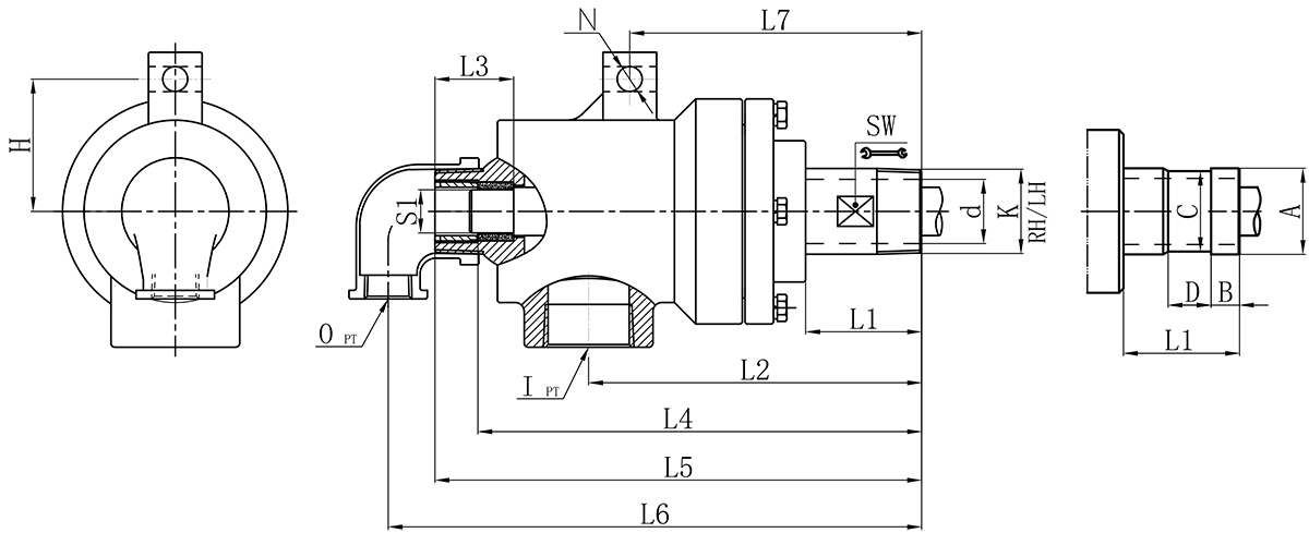 Model | K | I | O | S1 | d | L1 | L2 | L3 | L4 | L5 | L6 | L7 | L9 | N | H | SW | 法蘭式外管尺寸對(duì)照表 | |||