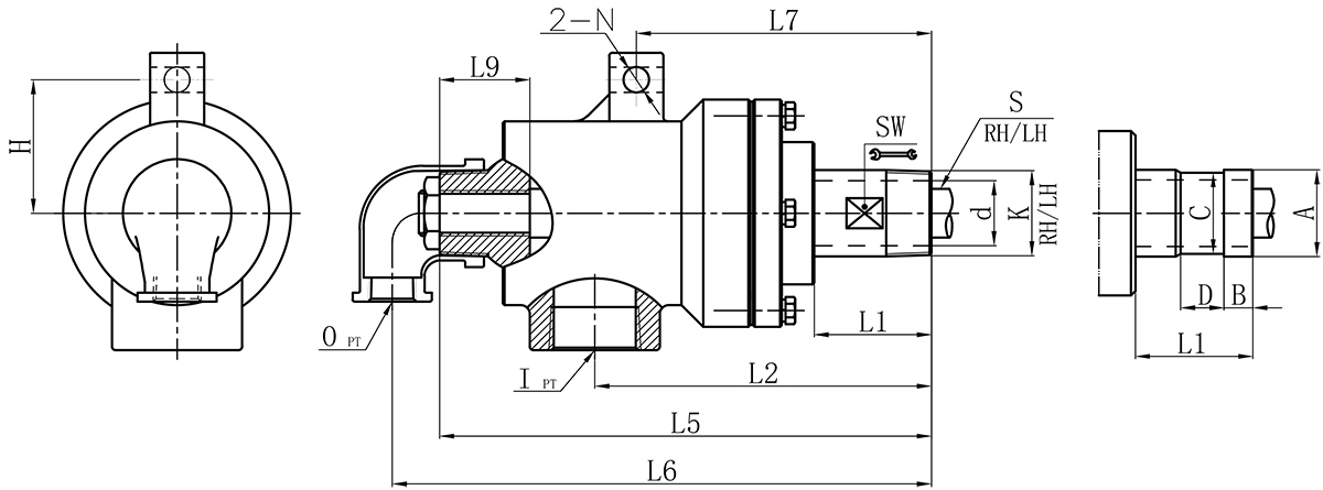 Model | K | I | O | S | d | L1 | L2 | L5 | L6 | L7 | L9 | N | H | SW | 法蘭式外管尺寸對照表 | |||