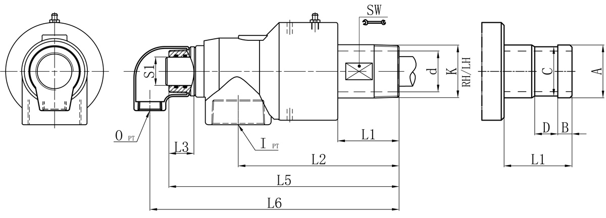 Model K I O S S1 d L1 L2 L3 L5 L6 SW 法蘭式外管尺寸對照表