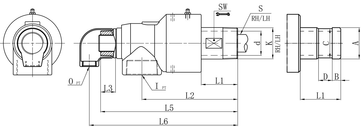 Model | K | I | O | S | S1 | d | L1 | L2 | L3 | L5 | L6 | SW | 法蘭式外管尺寸對照表 | |||