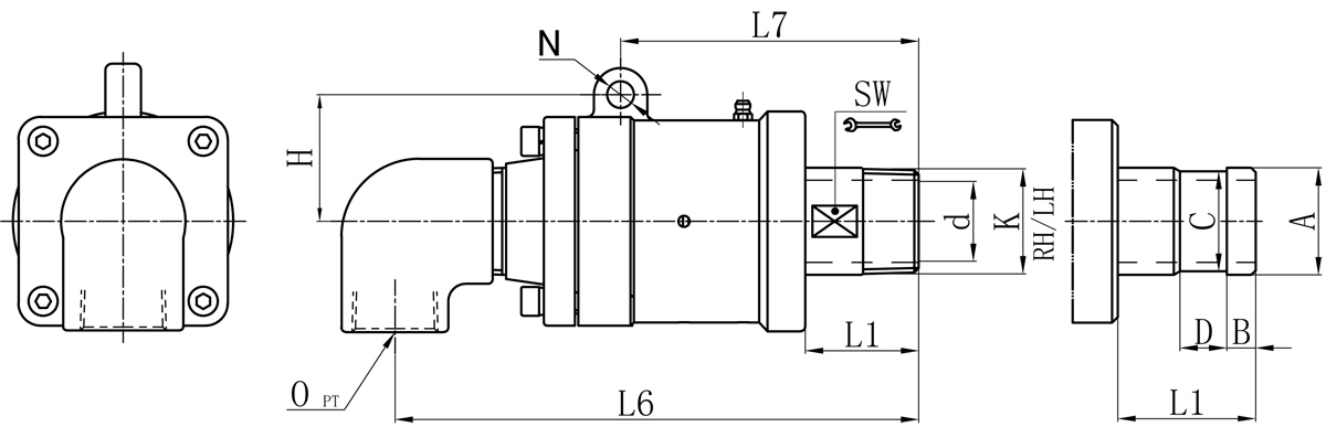 Model | K | O | d | L1 | L6 | L7 | N | H | SW | 法蘭式外管尺寸對照表 | |||