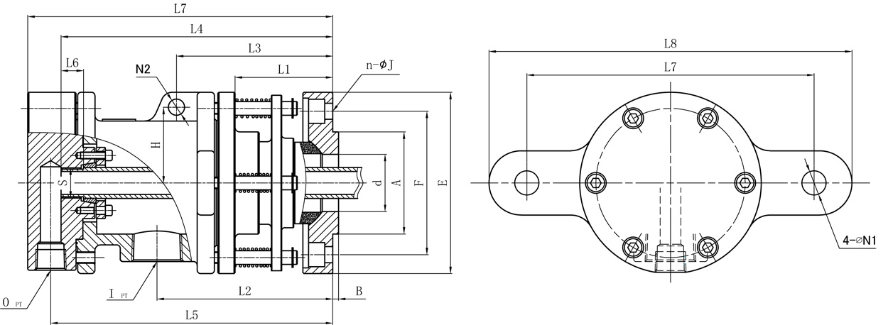 Model | A | B | I | O | d | E | F | S | L1 | L2 | L3 | L4 | L5 | L6 | L7 | L8 | n-ΦJ | N1 | N2 | H |