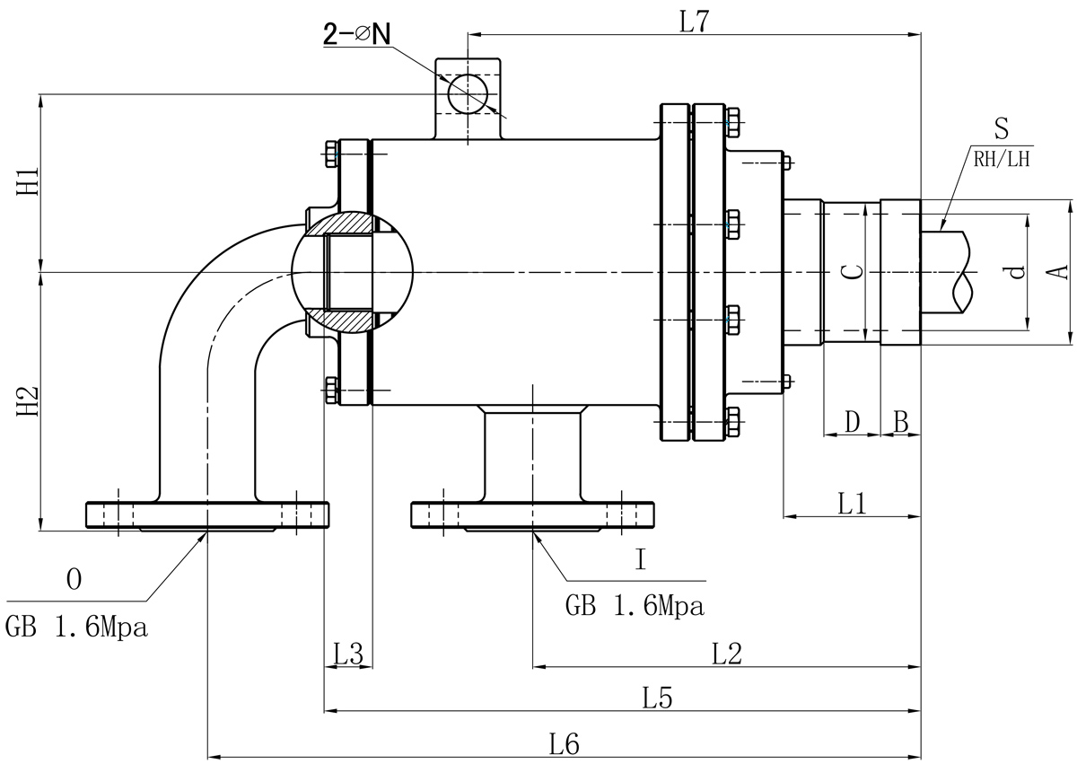 Model | I | O | S | d | L1 | L2 | L3 | L4 | L6 | L7 | N | H1 | H2 | 法蘭式外管尺寸對照表 | |||