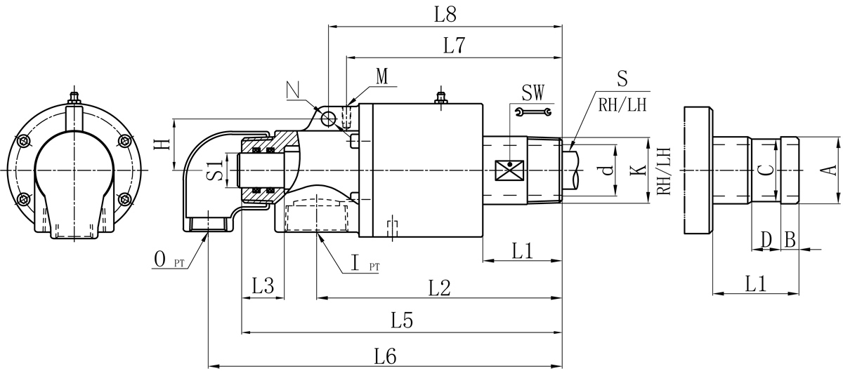 Model | K | I | O | S1 | d | L1 | L2 | L3 | L5 | L6 | L7 | L8 | M | N | H | SW | 法蘭式外管尺寸對照表 | |||